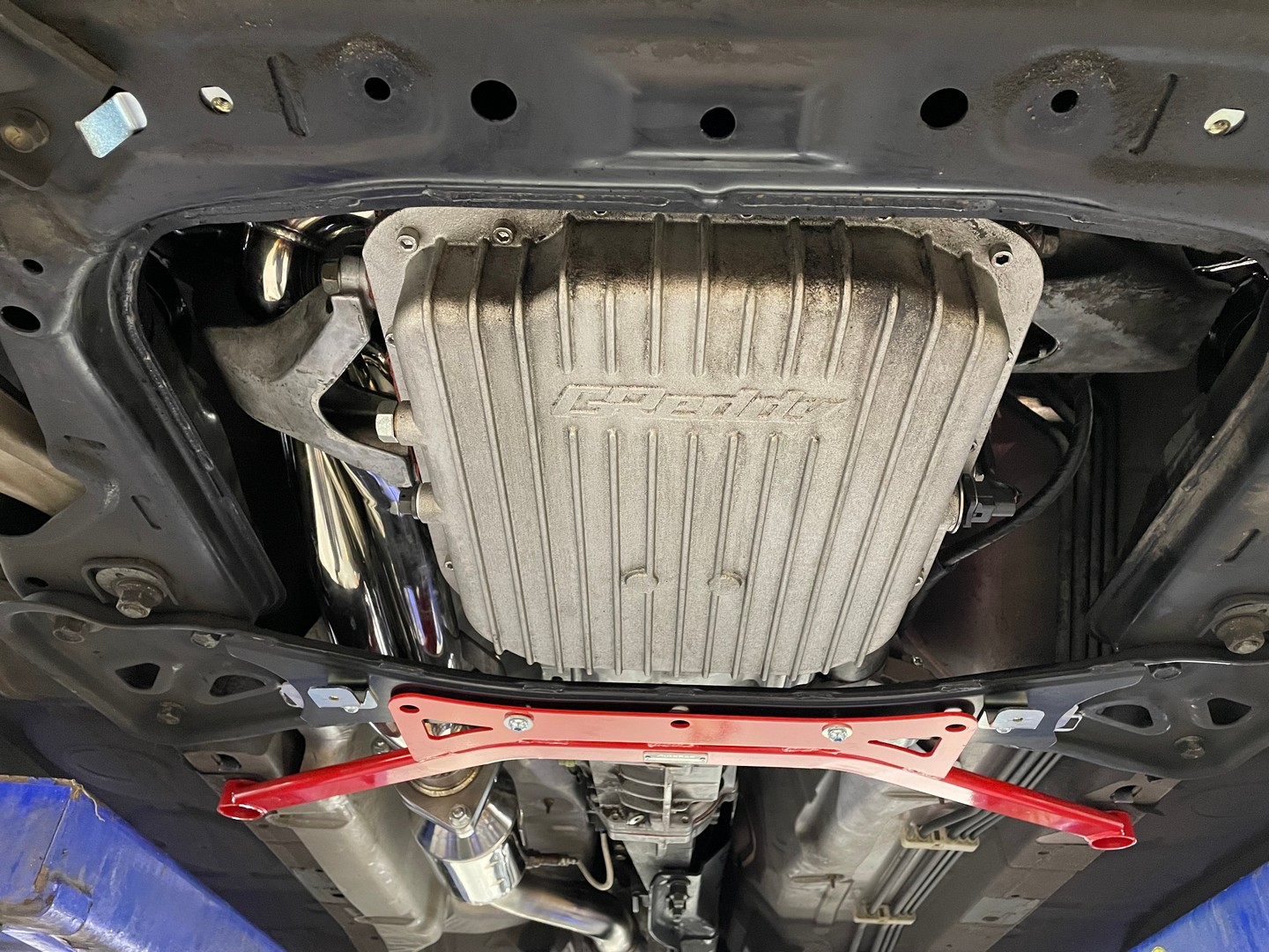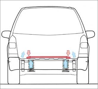 - Connects the lower suspension arms to minimise flex under cornering loads.