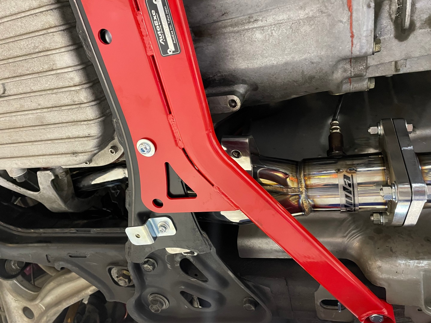 AUTOEXE suspension braces are engineered to reduce flex and sharpen handling. The front lower arm bar reinforces suspension geometry on the RX8 for greater precision.