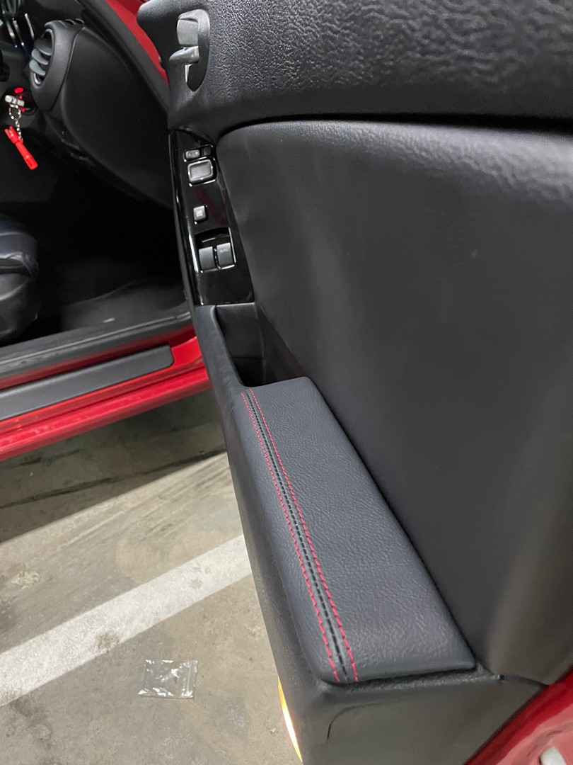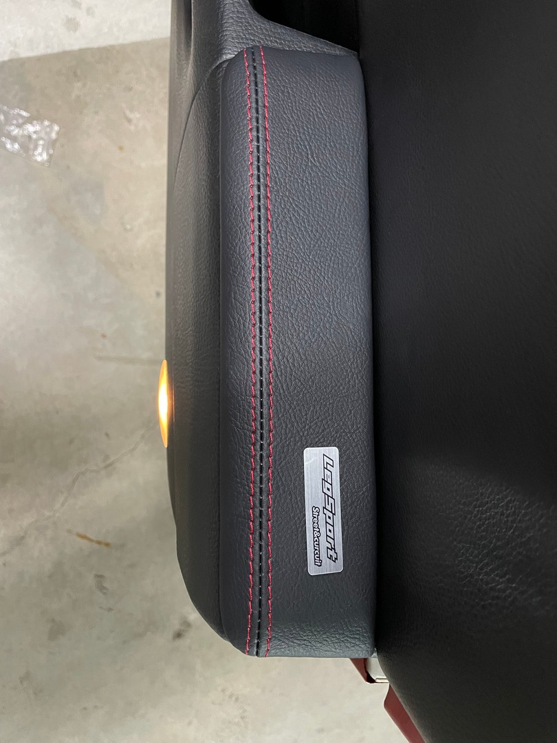 LEG Motorsport elbow cushion provides improved comfort and style with premium stitched leather finish.