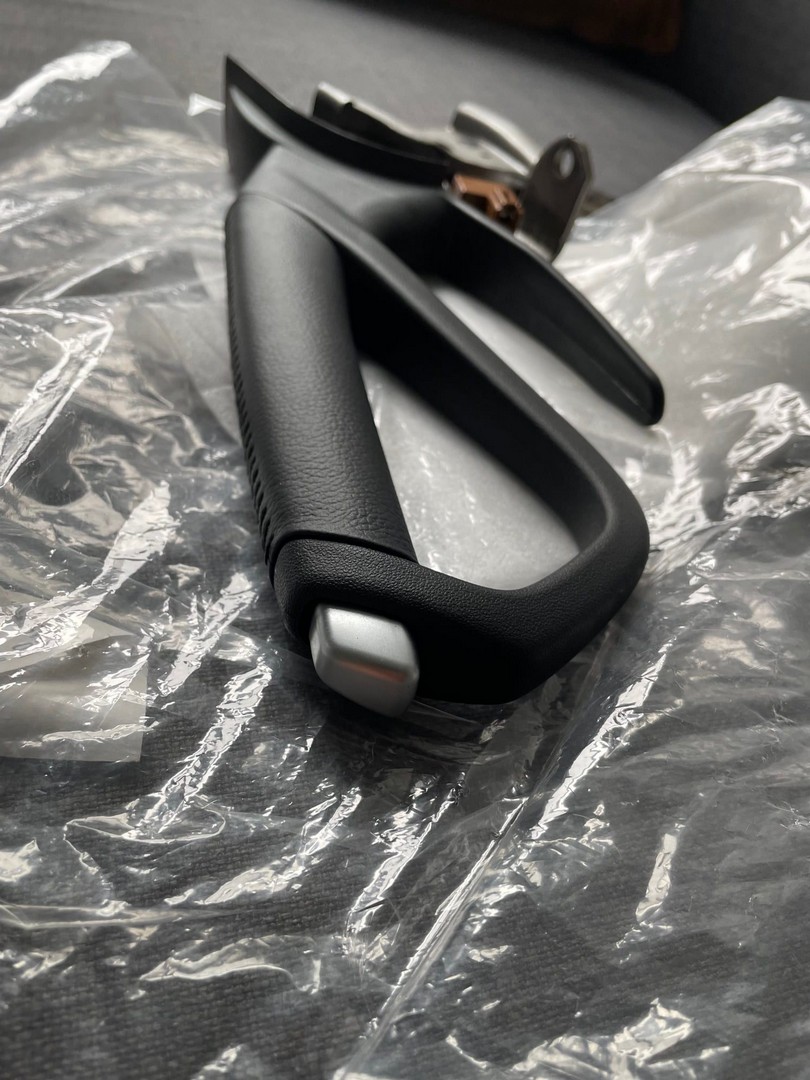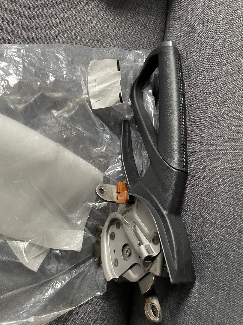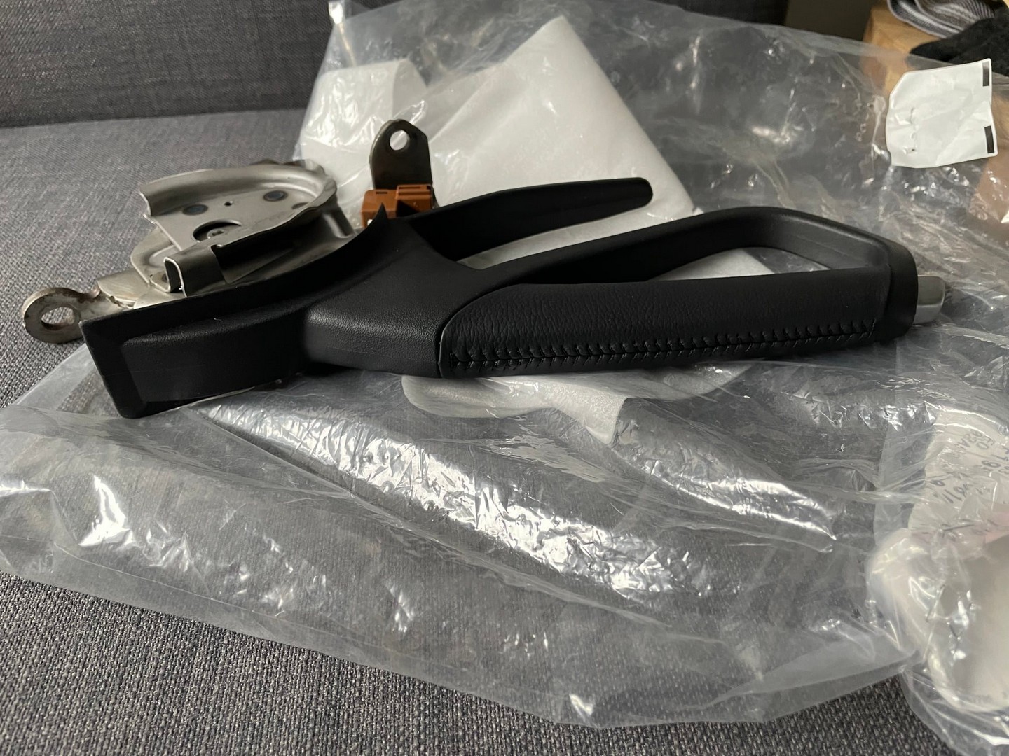 This OEM hand brake lever adds a premium touch to your RX8 interior with black stitching.