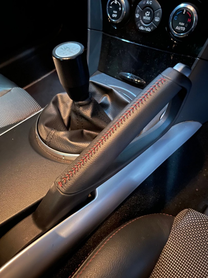 OEM Hand Brake Levers Leather with Red Stitch Optional Upgrade for Mazda RX8 (Series 1 & 2, 2003-2012)