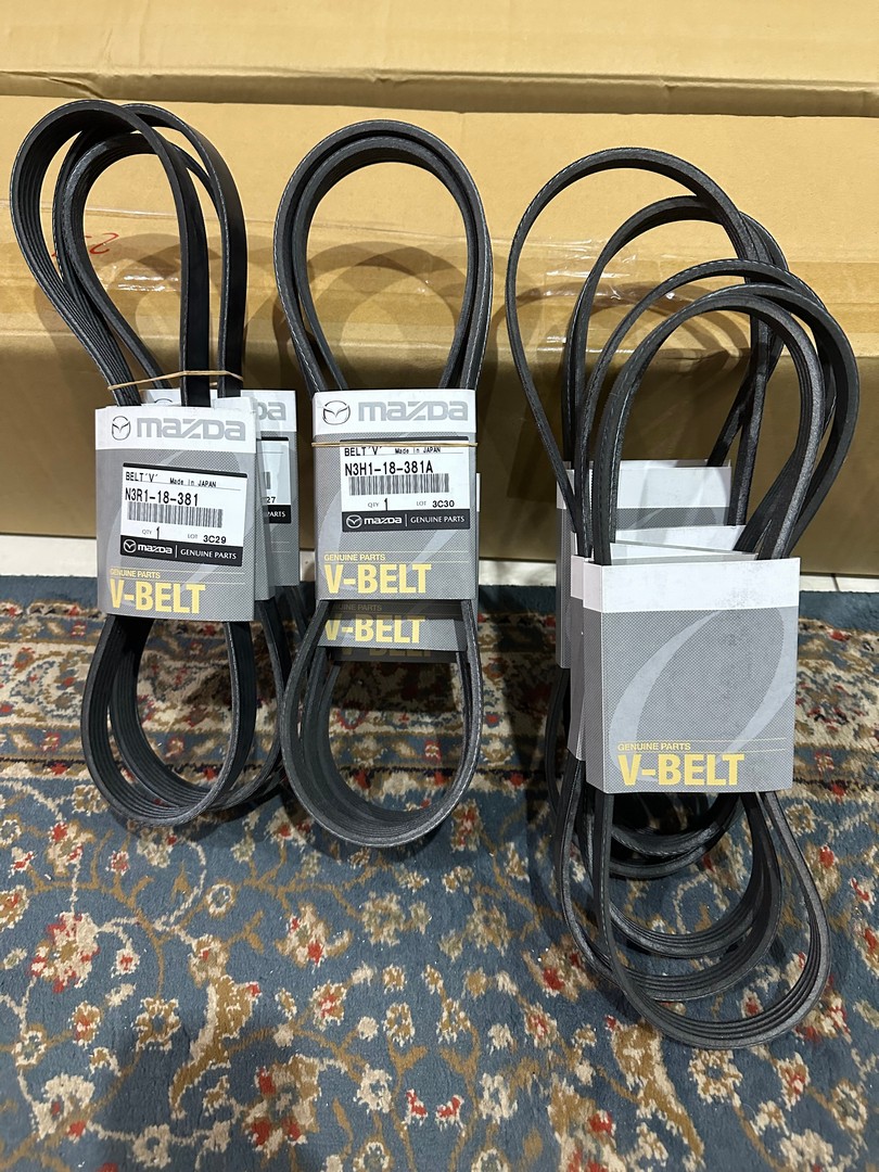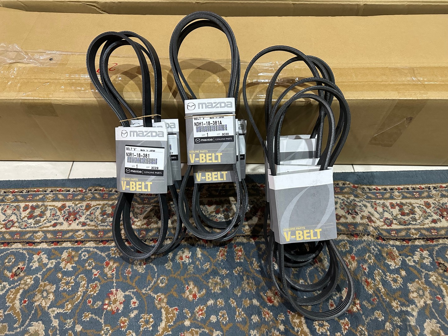 Waterpump, alternator, and air conditioning V-belt kit for Series 1 RX8. Ensures efficient power delivery, reliable operation, and long service life.