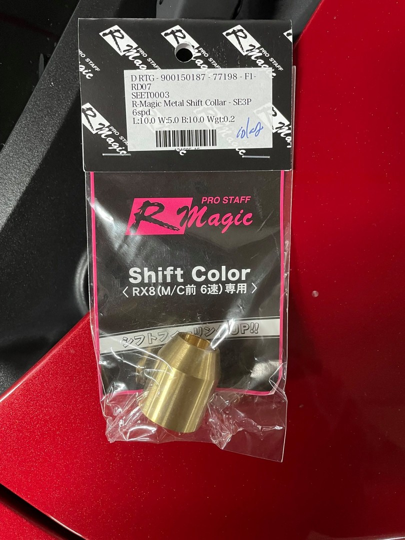 R-MAGIC designed this titanium shift collar as a high-quality upgrade over the OEM plastic part, improving shift feel and durability.